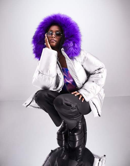 Product Name: Faux fur trim hooded puffer jacket discount